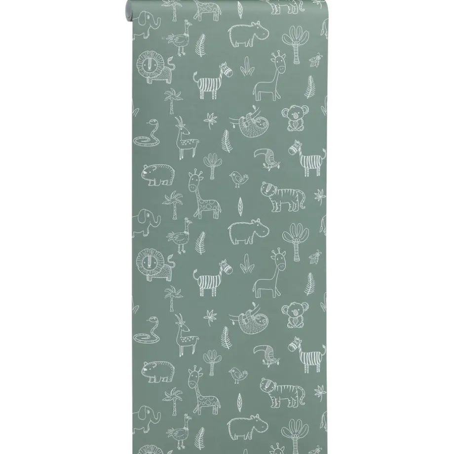 Vliesbehang Veerle in sfeervolle groene kleur met een prachtig dieren patroon.Het behang is voorzien van het FSC-keurmerk. Plakken met Perfax Pink. 10 meter per rol.