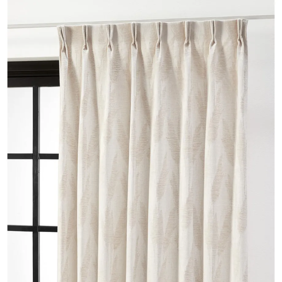 Gordijn Guusje in een off-white kleur. De stof is gemaakt van 53% polyester en 47% acryl. Het patroonhoogte is 69 centimeter.