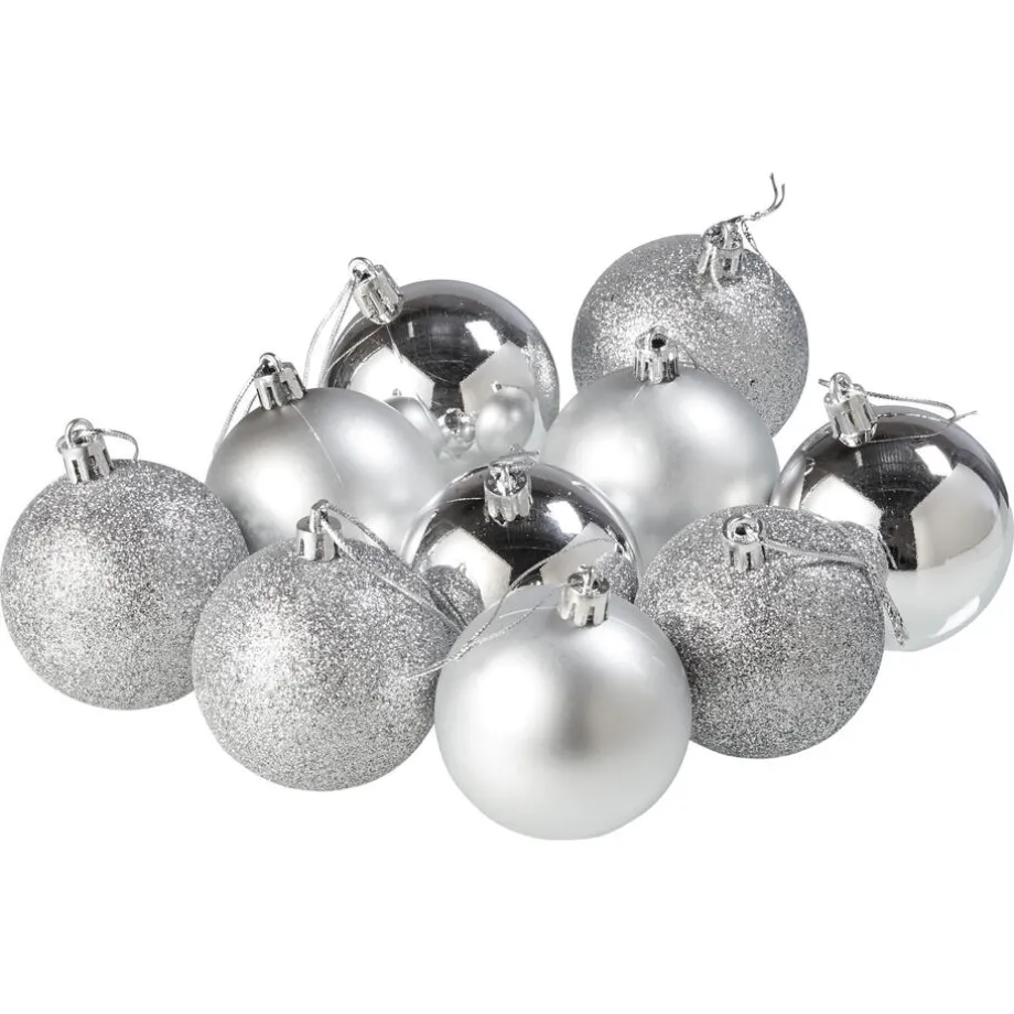 Mix van zilveren kerstballen. Per 10 stuks. 6 cm doorsnede.