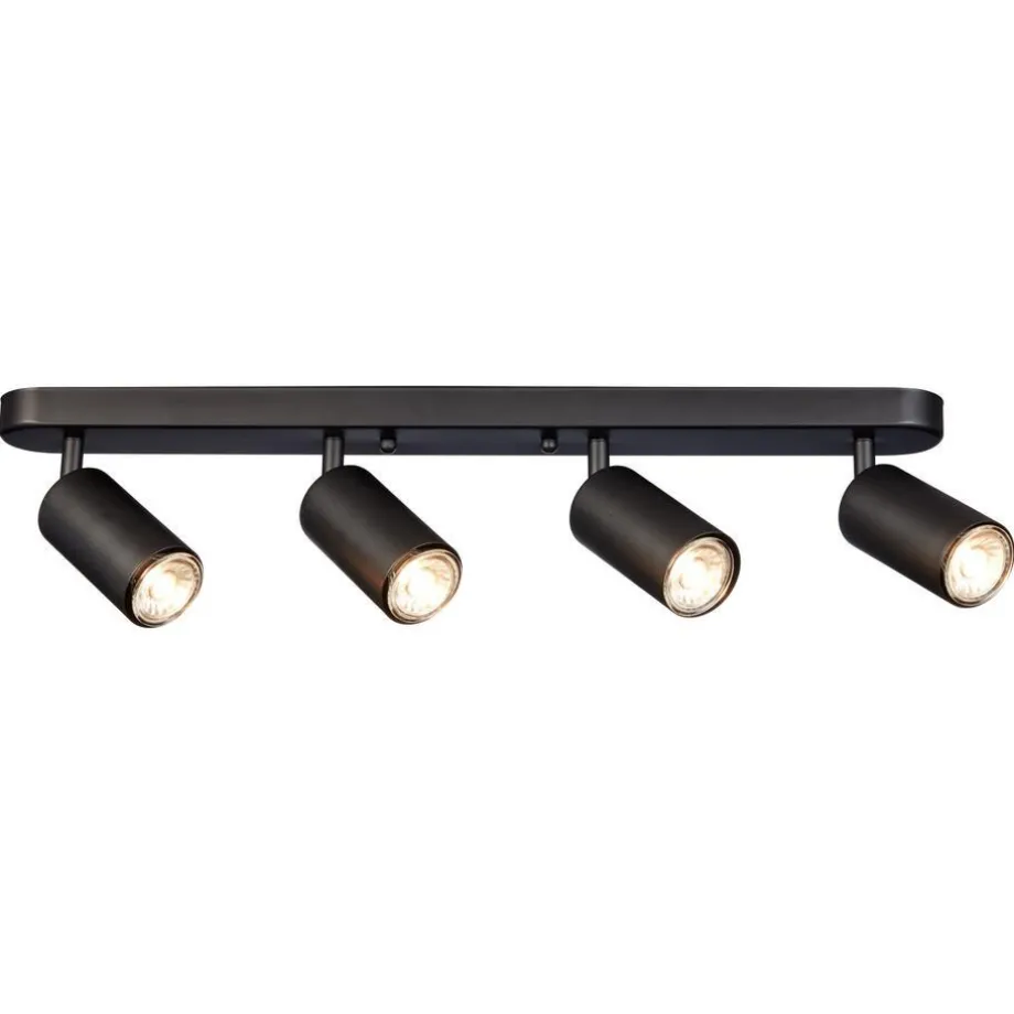 Strakke metalen spot met mat zwarte kleur. 4-lichts. Excl. lichtbron.