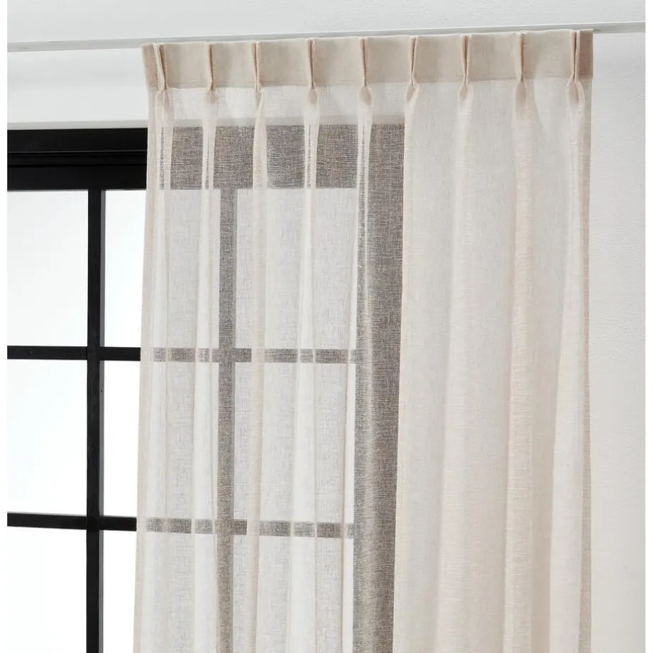 Lichtdoorlatende naturelkleurige inbetween linnen gordijnstof.