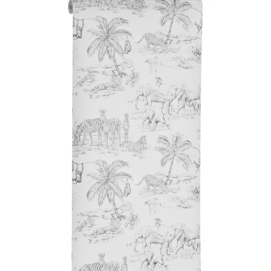 Vliesbehang met dierenprint in grijstinten. Licht afwasbaar. Plakken met Perfax Roll-On. 10 meter per rol.