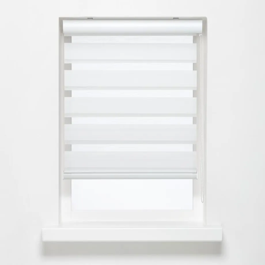 Duo rolgordijn wit met elegante bovenkoof. Creëer je eigen lichtinval en privacy. Met afwisselende open en dichte stofbanen en halfronde aluminium bovenkoof.Eenvoudig zelf te monteren. Met vochtige doek te reinigen. Incl. schroeven, pluggen, montagesteunen, kindveiligheidsclip en handleiding.