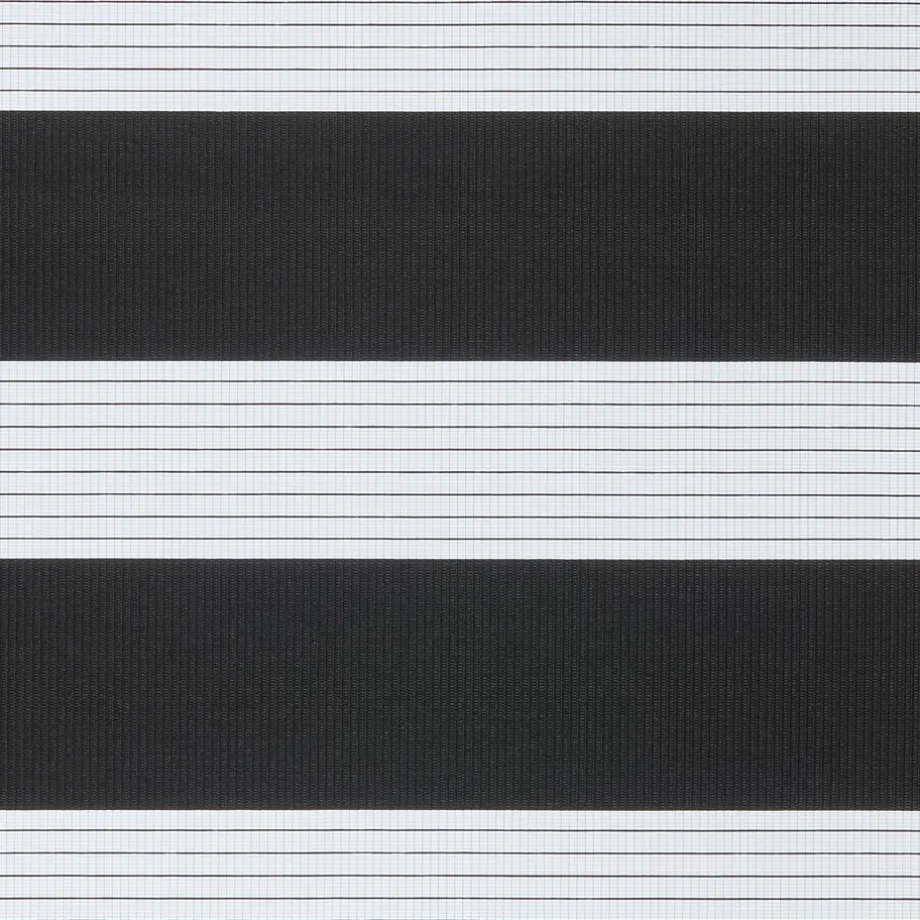 Duo rolgordijn Dean zwart is licht doorlatend. De stof is opgebouwd uit transparante en ondoorzichtige stroken die elkaar afwisselen. Zo kun je met een handig ketting systeem zelf lichtinval en privacy bepalen. Dankzij de eigenschappen van polyester is het duo rolgordijn erg slijtvast en makkelijk schoon te maken met een vochtige doek.