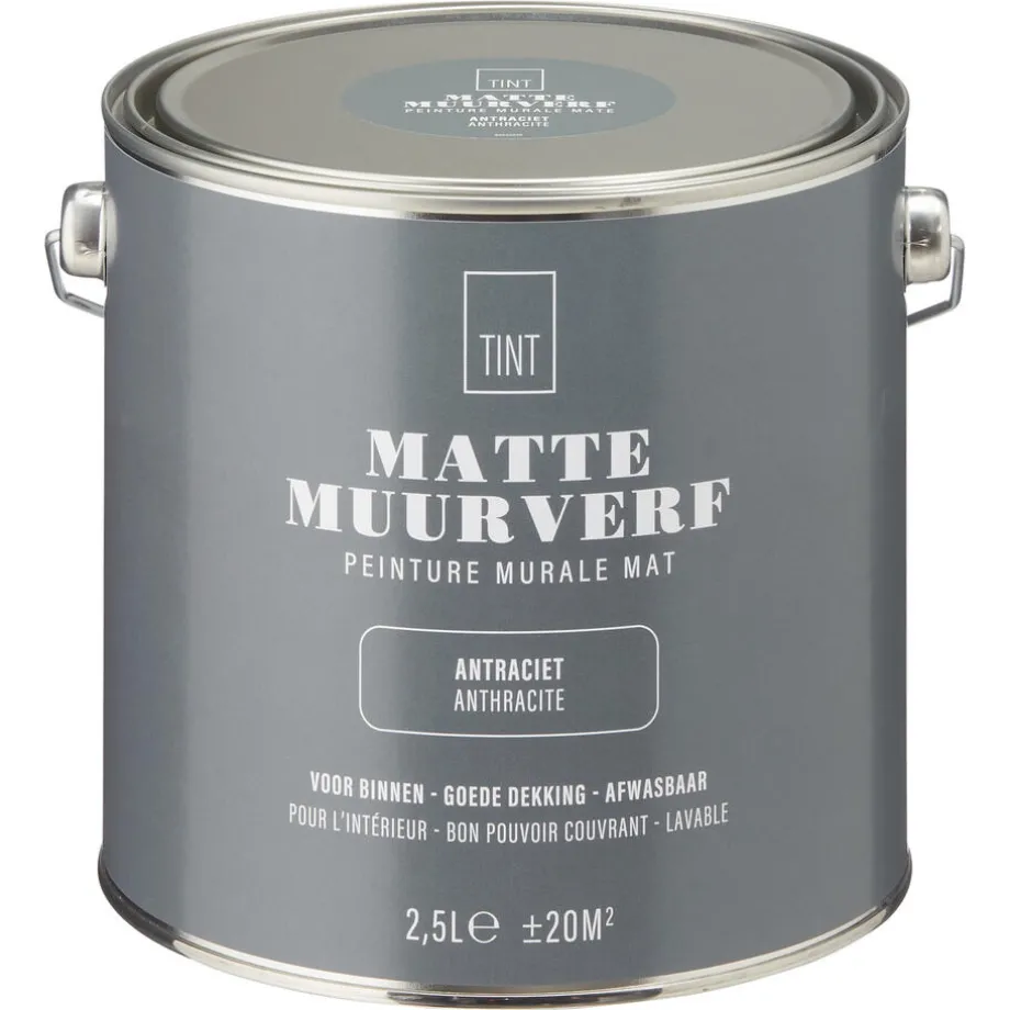 Breng de mooiste kleuren in huis met deze Antraciet matte muurverf. Deze verfsoort is perfect te combineren met verschillende interieurstijlen en zorgt voor een rustige en tijdloze uitstraling.