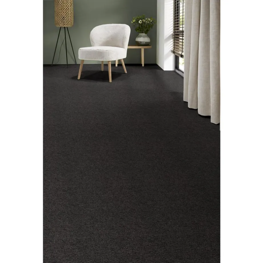 Antracietkleurig tapijt met lussenpool structuur. Antistatisch, geeft extra comfort en is kleurvast. Geschikt voor vloerverwarming en in combinatie met een ondertapijt geschikt voor trapbekleding. 400 cm. Let op: tapijt van 10 strekkende meter of meer kan alleen worden afgehaald in de winkel. Wil je 10 strekkende meter of meer bestellen om bijvoorbeeld in verschillende ruimtes te leggen? Bestel dan meerdere kleine coupages.