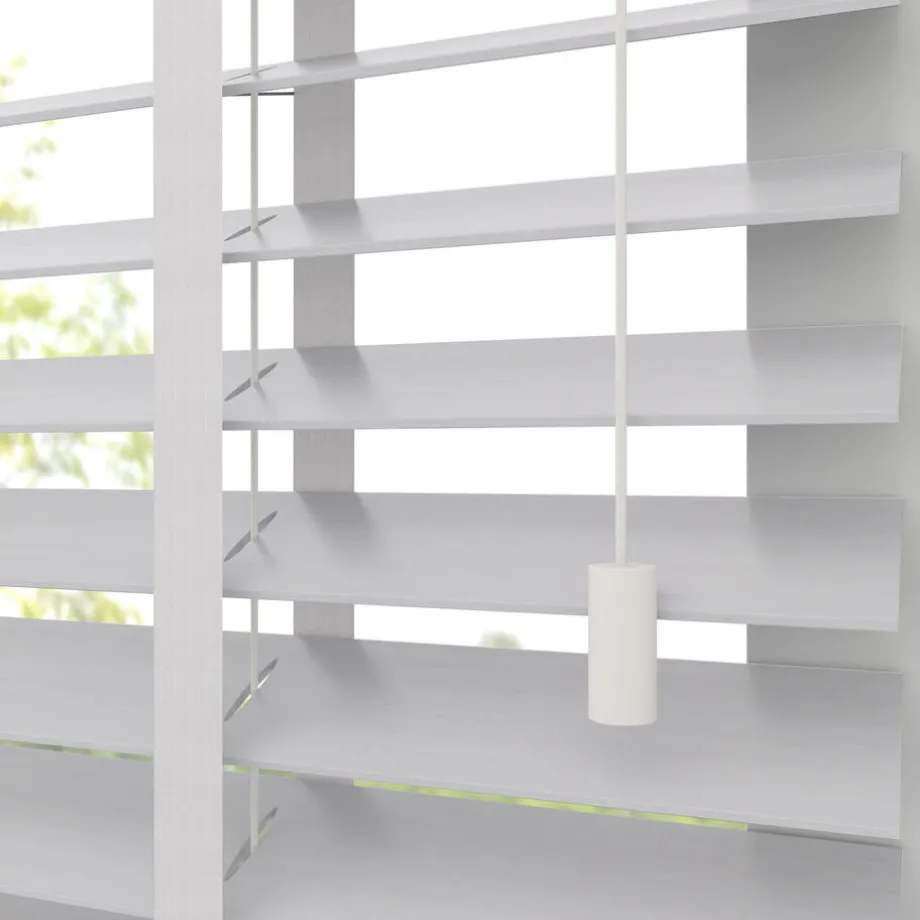Houten jaloezie wit met karakteristieke bamboe structuur en landelijke uitstraling. 100% FSC bamboe. De brede lamellen van 50 mm zorgen voor veel lichtinval en bieden veel privacy wanneer je deze sluit. Op maat te maken en volledig naar wens samen te stellen. Bepaal zelf de bedieningszijde en kies uit diverse accessoires en uitvoeringen. Keuze uit een bijpassend ladderkoord, 48 verschillende ladderbanden en een koordhanger van hout, rvs of zwart metaal.