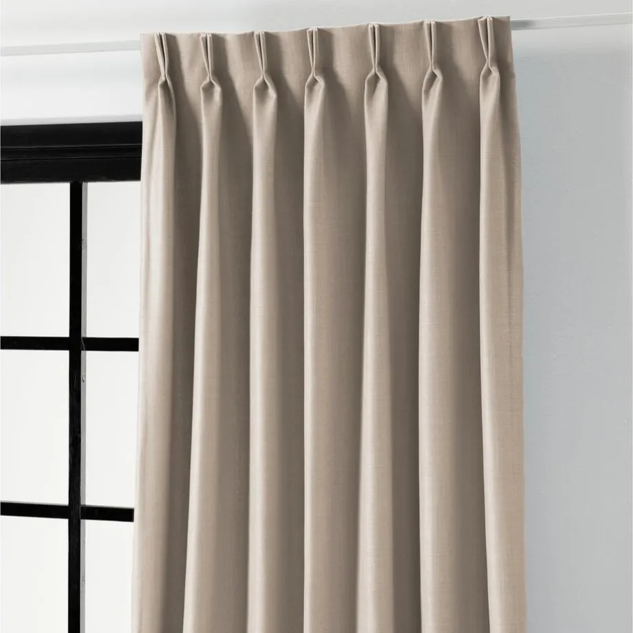 Zandkleurige uni gordijnstof. Breedte 145 cm.