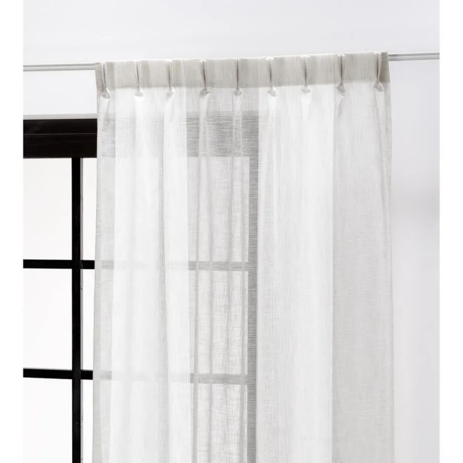 Inbetween van een soepele off-white stof met verticale strepen. Vormvast. 300 cm hoog.