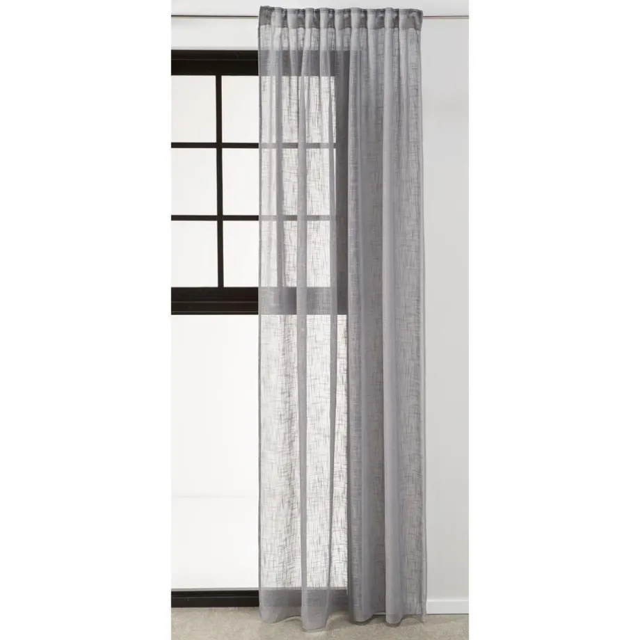 Kant en klaar gordijn van soepelvallende grijze stof. Stevig en kreukherstellend. 140×260 cm (bxh).