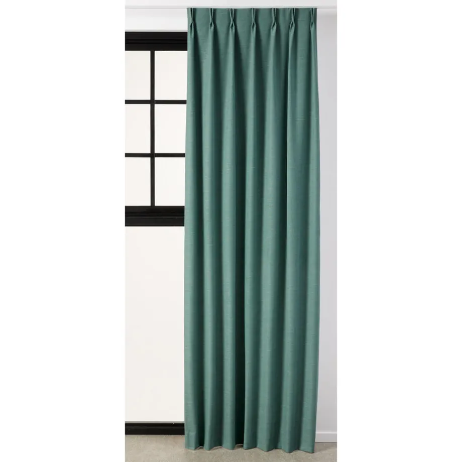 Verduisterende gordijnstof Toby Groen is stijlvol en van uitstekende kwaliteit. Stevig, vormvast en slijtvast. Dit black-out gordijn is aan de achterkant voorzien van een coating die ervoor zorgt dat dit gordijn 100% verduisterend is. Deze coating zorgt dat er geen licht door de stof komt. Daarom is de achterkant meestal wit en de voorkant is de gewone gordijnstof. Een black-out gordijn voelt wat stugger aan. Deze gordijnstof houdt, in tegenstelling tot dim-outs 100% het zonlicht tegen. Bij de confectie van deze kwaliteit kunnen kleine gaatjes ontstaan. Dit is inherent aan de stof en kan niet voorkomen worden. 140 cm breed.