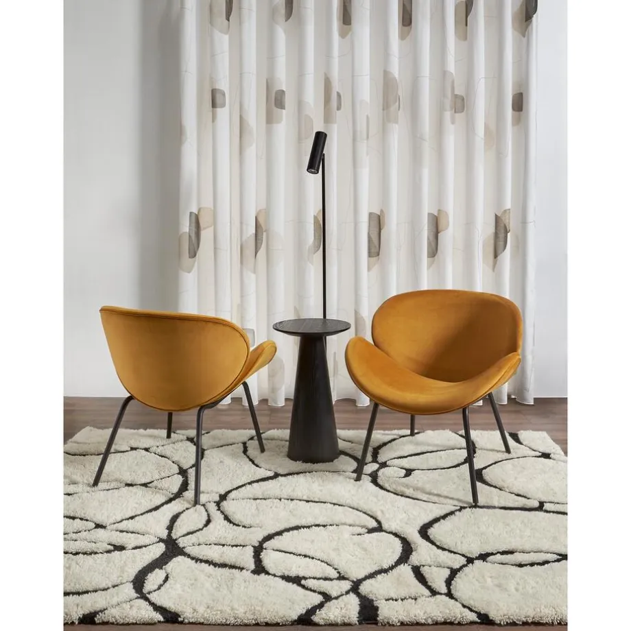 Transparante gordijnstof naturelkleurig met gedrukt abstract patroon. Stevig, vormvast en soepel. 300 cm.