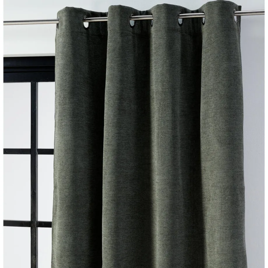Verduisterend kant en klaar gordijn Laurens Groen heeft een grove geweven structuur aan de voorkant. De zachte voering aan de achterkant van dit gordijn werkt dubbel isolerend, zowel tegen de warmte als tegen de kou. Het gordijn is gemaakt van 100% polyester en heeft een chenille effect. Chenille geeft de gordijnstof een mooie glans en een zacht gevoel. Ideaal voor in de woon- of slaapkamer, een plek waar het overdag sfeervol en in de avond donker moet zijn in huis. Tevens heeft het gordijn een geluiddempende werking voor een aangename akoestiek. Het gordijn is kant en klaar en voorzien van ringen.