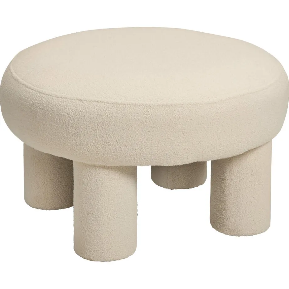 Poef Pachino in witte kleur is gemaakt van MDF en is bekleed met een zachte teddy stof voor extra comfort. Hij heeft een ronde vorm en staat op pootjes. Zo geeft hij een unieke sfeer in je ruimte. Ø60×37 centimeter.