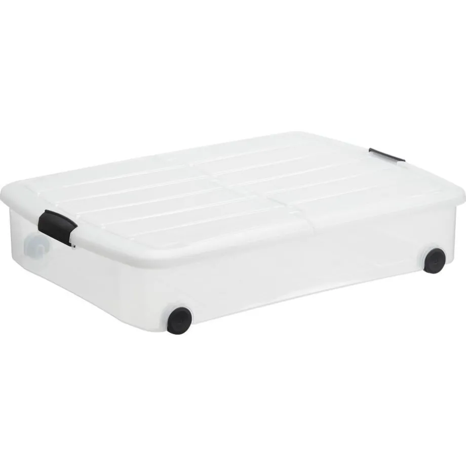Transparante kunststof bedroller met losse deksel en wieltjes. 50 liter. 74x55x15 cm (lxbxh),