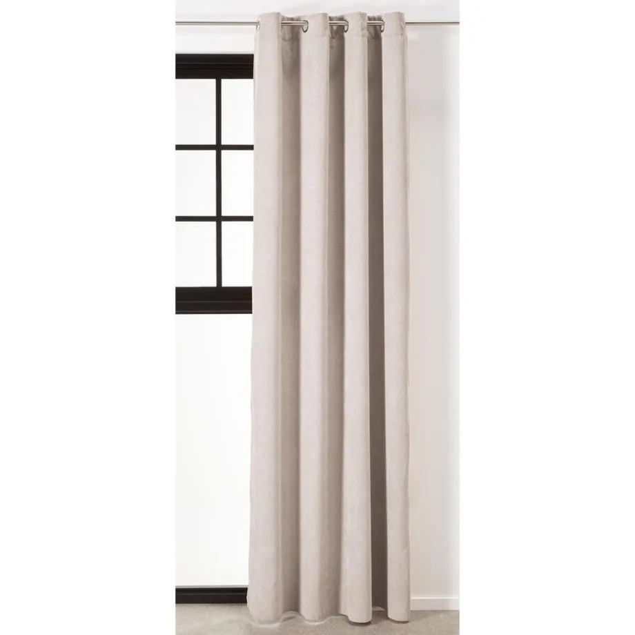 Kant en klaar gordijn zandkleurig. Soepelvallend, stevig en kreukherstellend. 140×265 cm (bxh).