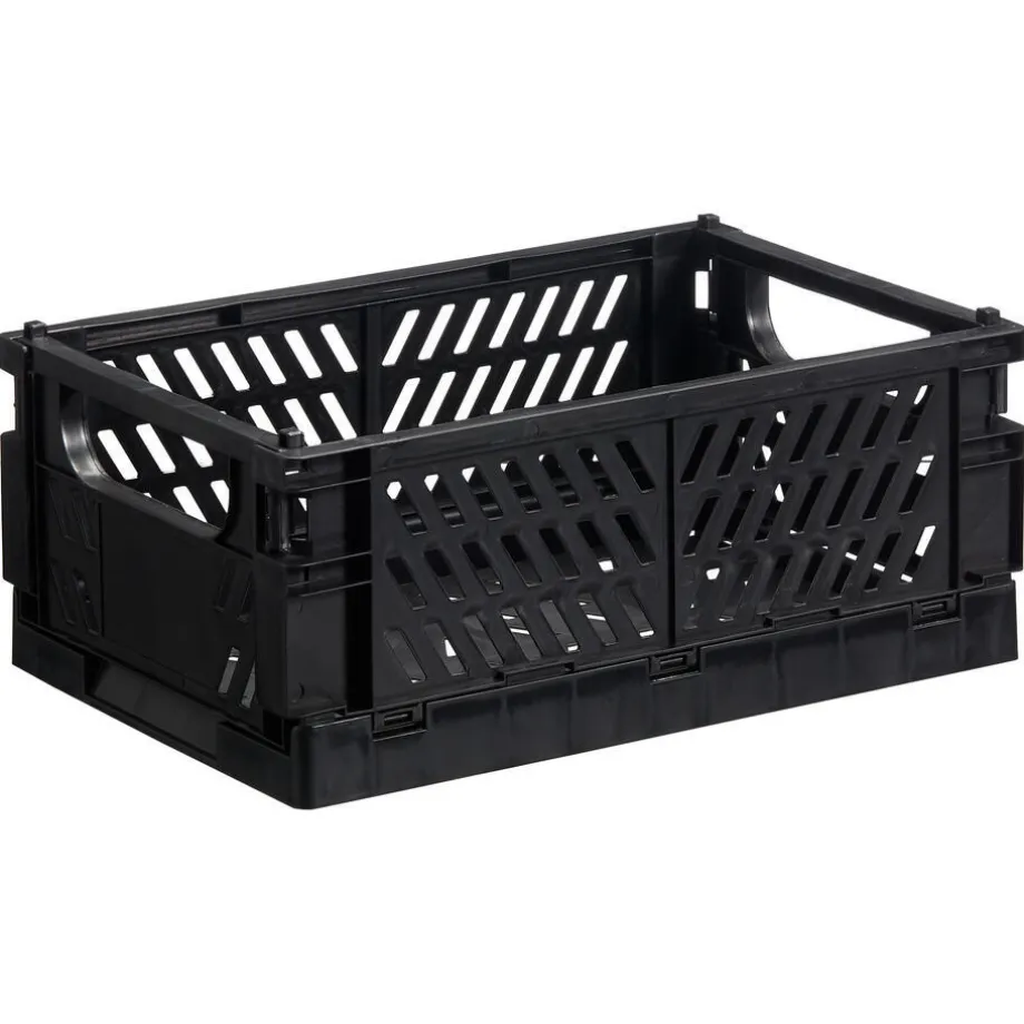 Klapkrat L in de kleur zwart. Gemaakt van gerecycled PP 60%, virgin PP 40%. 35x23x14 (LxBxH)