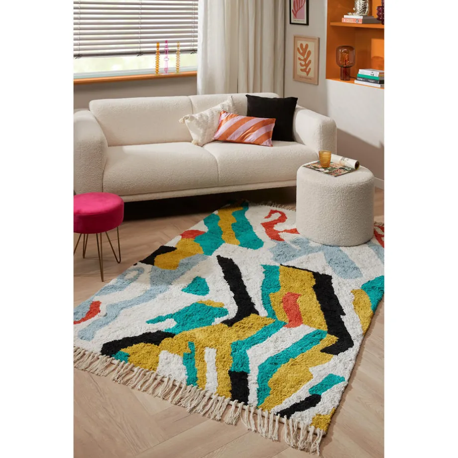 Moderne poef Padule in een crème kleur. Deze poef is gemaakt van een bouclé stof. ø50×41 centimeter.