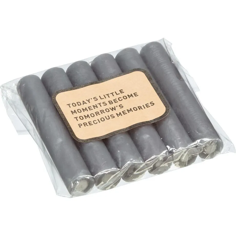 Dinerkaarsen grijs. Set van 6 stuks. 12 cm hoog.