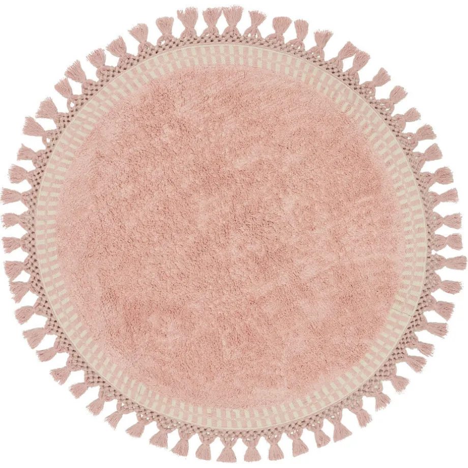 Rond vloerkleed Hana in een roze kleur. Dit vloerkleed bestaat uit getuft katoen en is handgemaakt. ø100 centimeter.