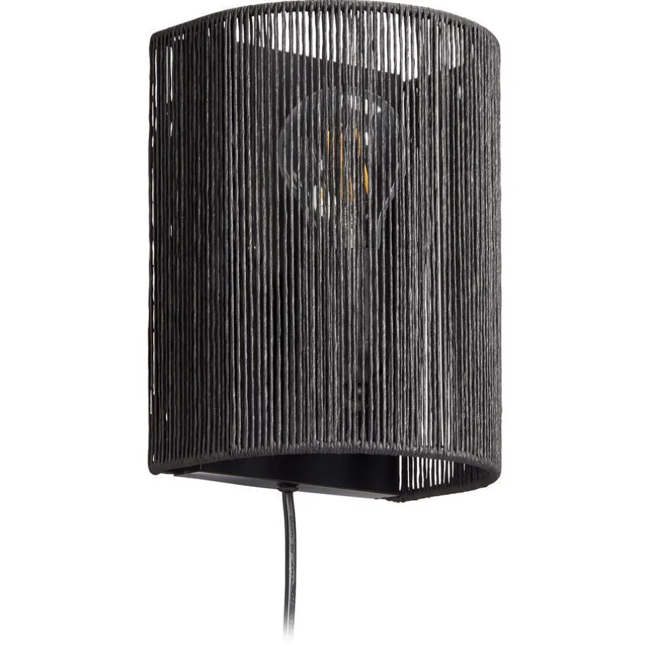 Wandlamp Cera in de kleur zwart. Deze wandlamp is gemaakt van 50% metaal en 50% touw en heeft een E27 fitting. 20×15 centimeter.