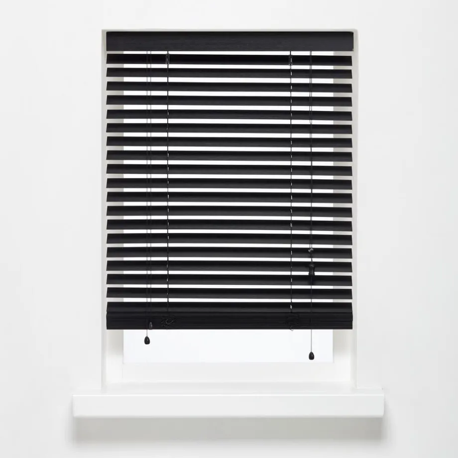 Bamboe Jaloezie Jax Zwart met een mat gelakte houtuitstraling en stoer design. Ideaal voor het regelen van licht en privacy. 50 mm per strook. Eenvoudig zelf te monteren aan wand of plafond. De lamellen van bamboe jaloezieën zijn dunner dan die van houten jaloezieën. Dat betekent ook dat ze iets lichter in gewicht zijn en je ze daardoor makkelijk kunt bedienen. Dit is een complete set incl. schroeven, pluggen, montagesteunen, afdeklat, ladderkoord, kindveiligheidsclip en montagehandleiding. Verkrijgbaar in verschillende kleuren en afmetingen.