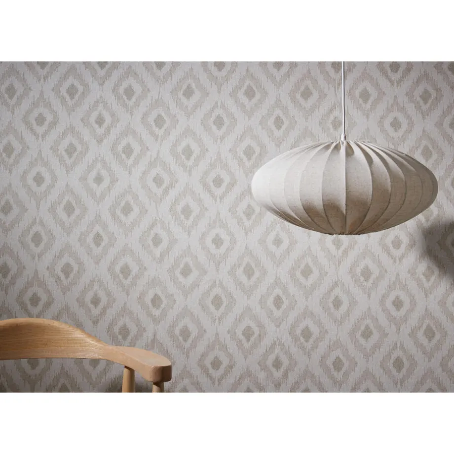 Vliesbehang Jolanda in een zand kleur met sfeervol ruit dessin. Goed afwasbaar. Voorzien van het FSC-keurmerk. Plakken met Perfax Pink. 10 meter per rol.