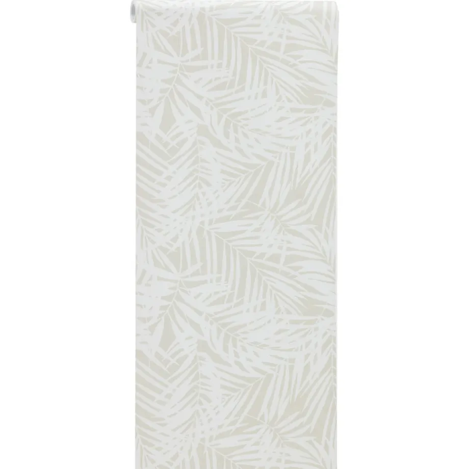 Vliesbehang Micha in sfeervolle zand kleur met bladeren patroon.Het behang is voorzien van het FSC-keurmerk. Plakken met Perfax Pink. 10 meter per rol.