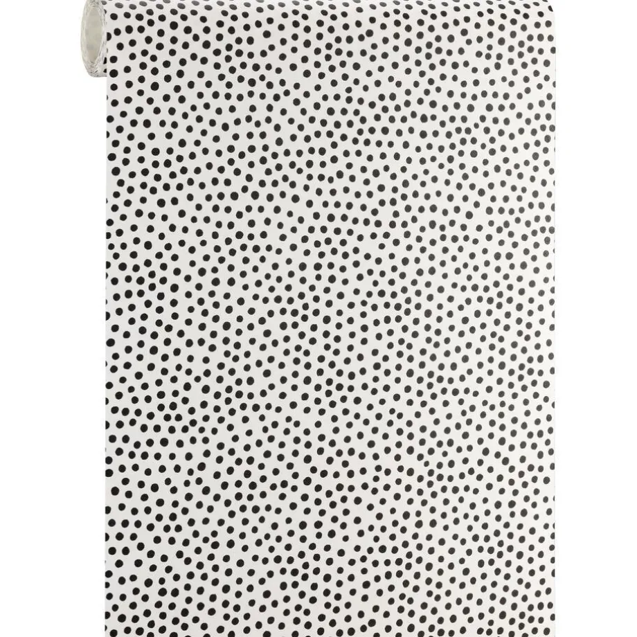 Polka is een schattig vliesbehang zwarte polkadots op een witte achtergrond. Kleur: wit/zwart.