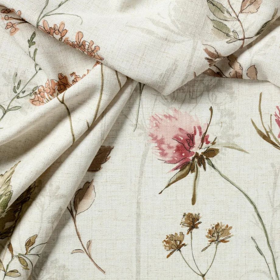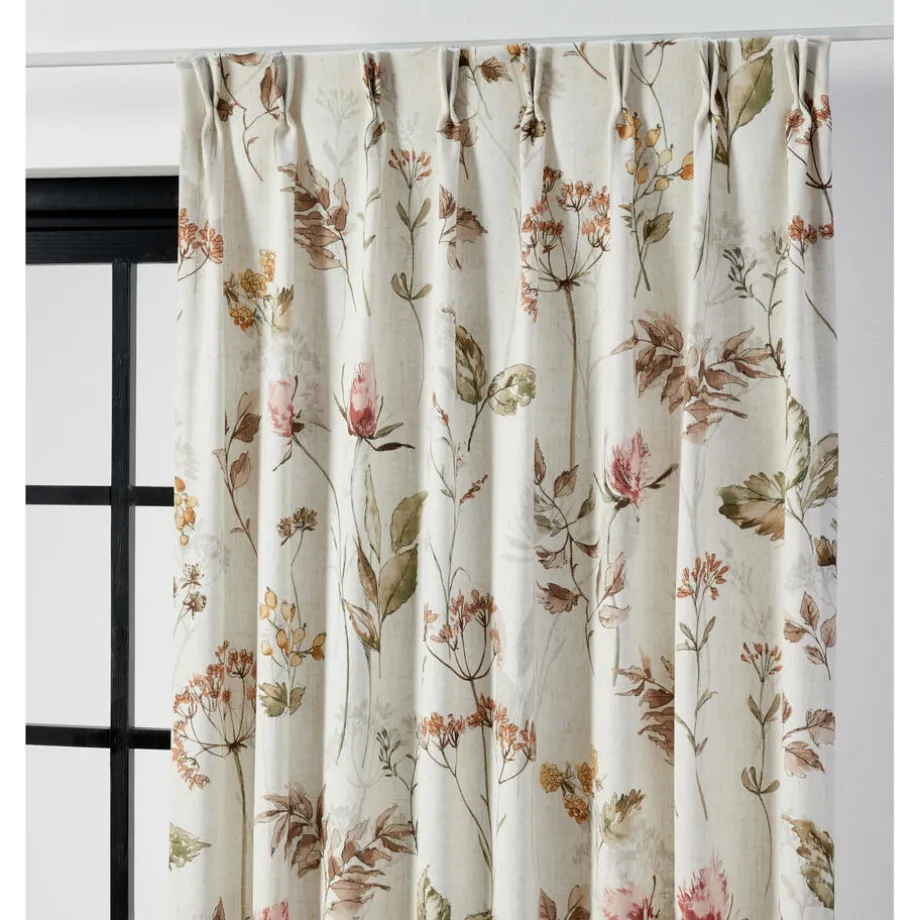 Gordijn Willow naturel is een lichtdoorlatend gordijn met een vrolijk gekleurd bloemen patroon en naturel-kleurige achtergrond. De stof bestaat uit een combinatie van recycled polyester met polyester en linnen. Dit maakt de stof slijtvast. Daarnaast zijn de gordijnen gemakkelijk schoon te maken met een vochtige doek.