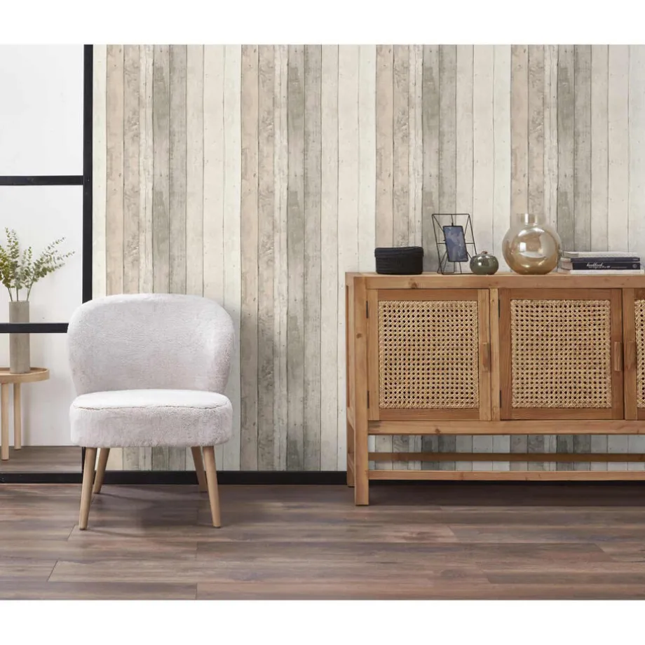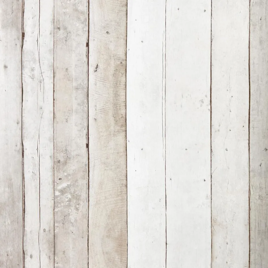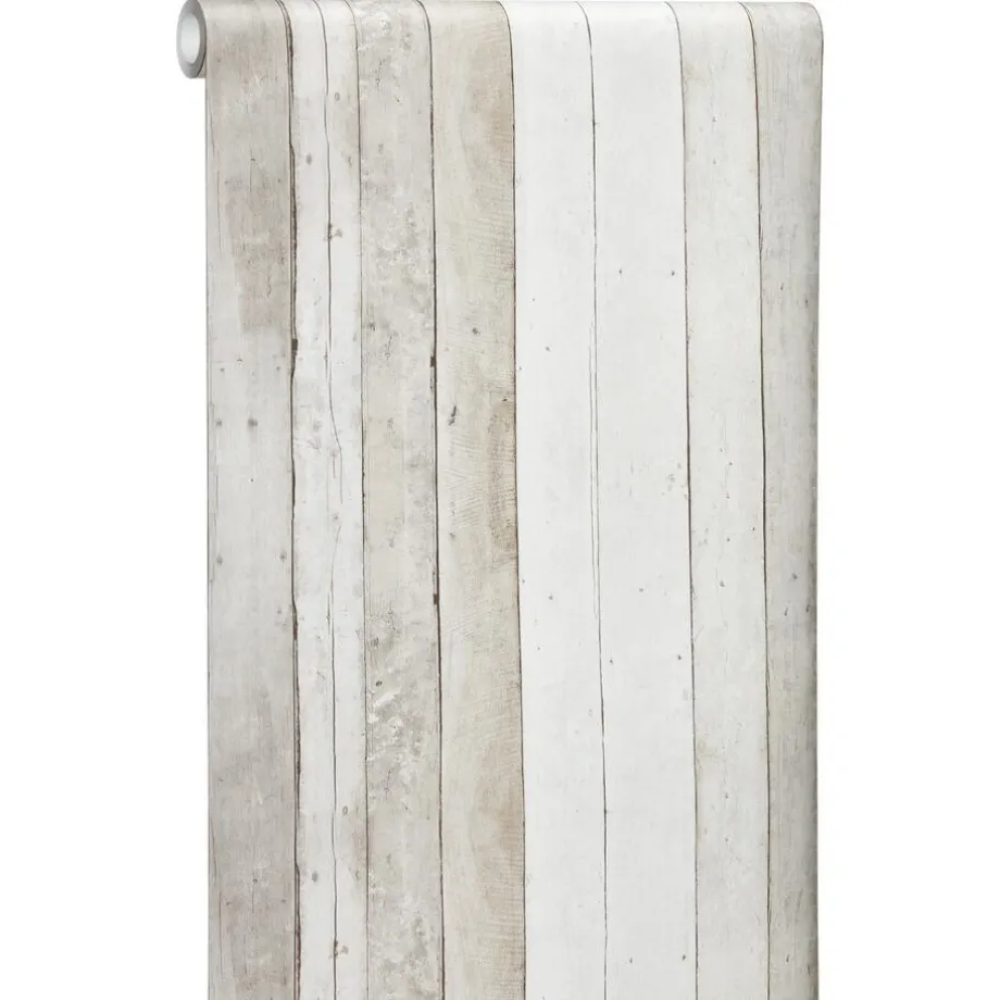 Stoer vliesbehang met steigerhoutprint. Kleur: grijs.