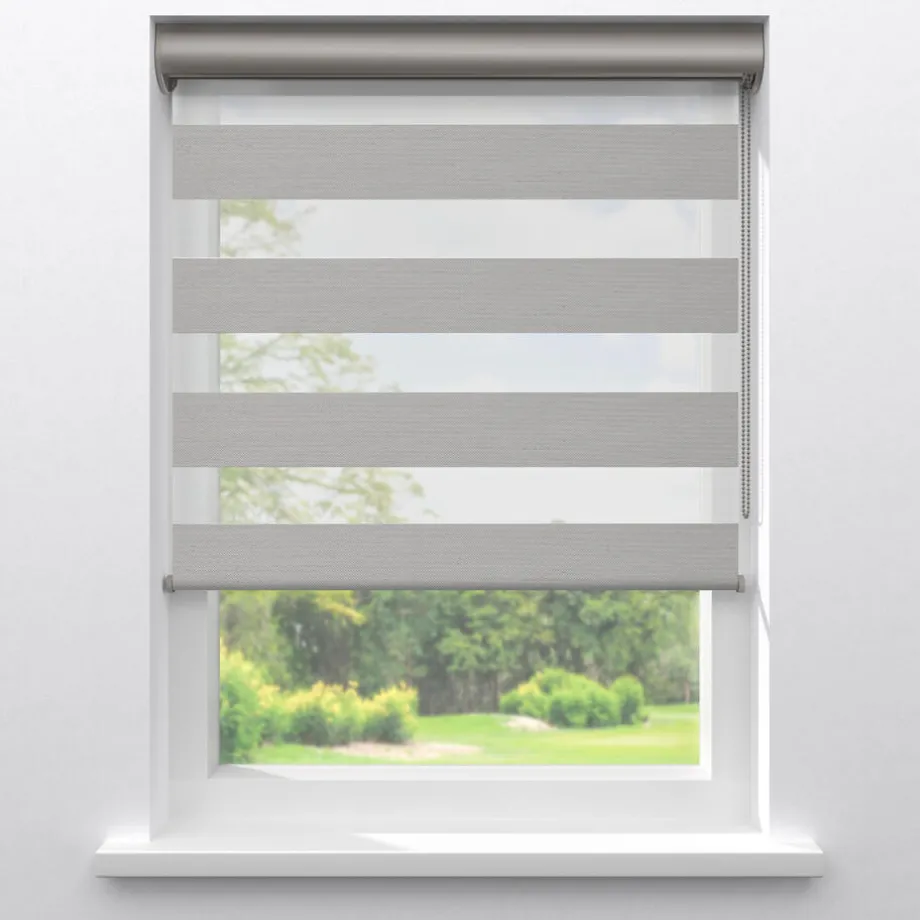 Duo rolgordijn Hidde is in een lichte grijze kleur met lichte textuur in de polyester stof. In combinatie met een ketting-systeem, is zowel lichtinval als privacy makkelijk te regelen op elk moment van de dag. Onderhoud is ook geen probleem: gebruik een licht vochtige doek om het duo rolgordijn schoon te maken.