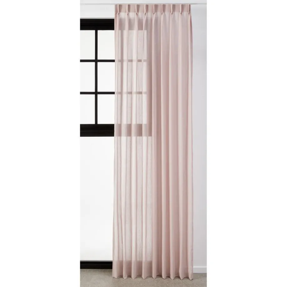 Transparante gordijnstof roze met zachte kleurmelange en matte uitstraling. 11% linnen. 300 cm breed.