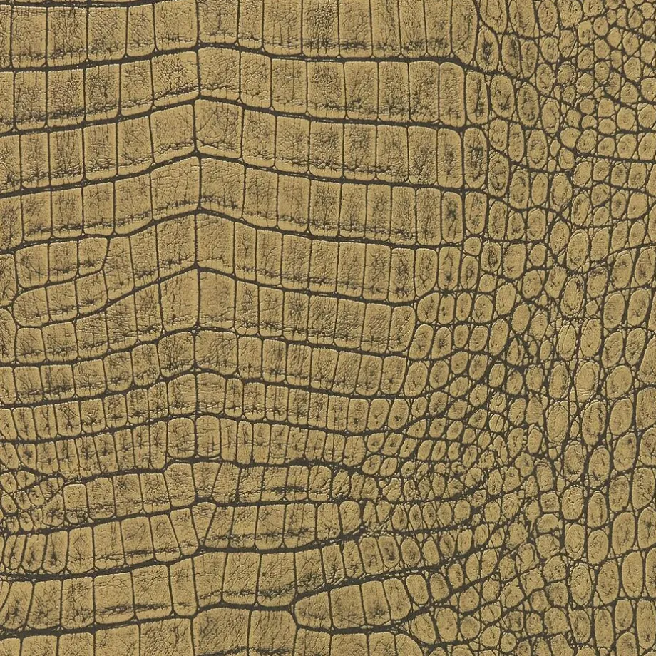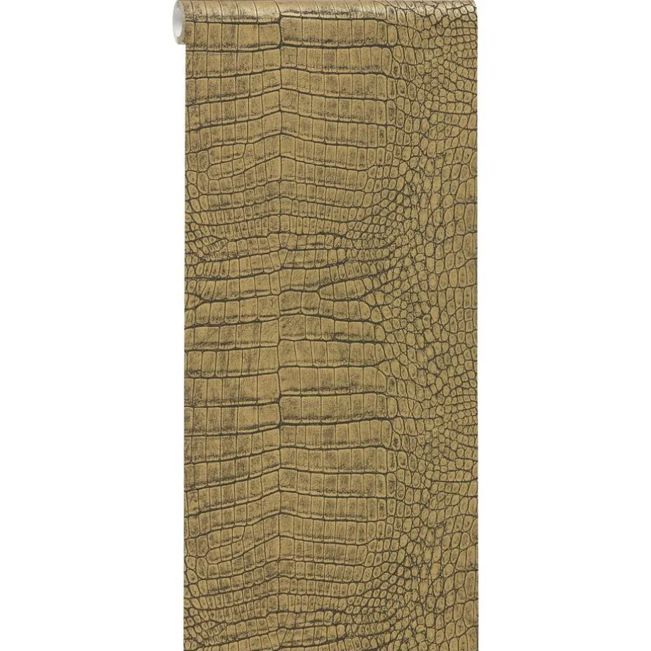 Vliesbehang met goudkleurig alligator dessin en voelbare structuur. Goed afwasbaar. Voorzien van het FSC-keurmerk. Plakken met Perfax Roll-On. 10 meter per rol.