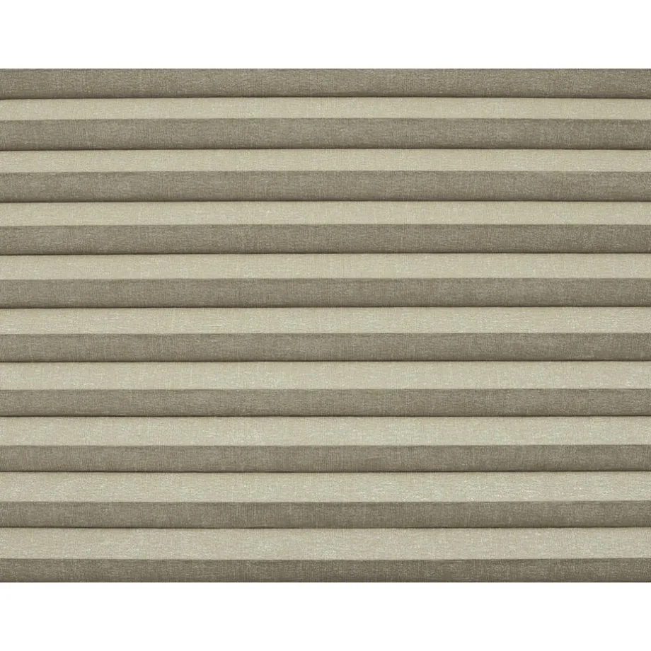 Plisségordijn Aniek taupe is een verduisterend dubbel plisségordijn. Dit betekent dat het een honinggraatstructuur heeft en daardoor een luxe uitstraling geeft. Dit plisségordijn heeft een plooibreedte van 25mm en is daardoor zeer geschikt voor kleine tot middelgrote ramen.