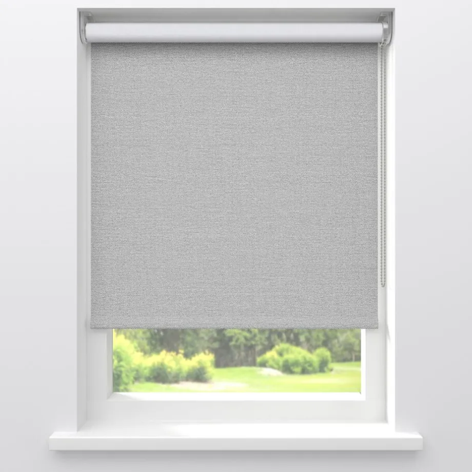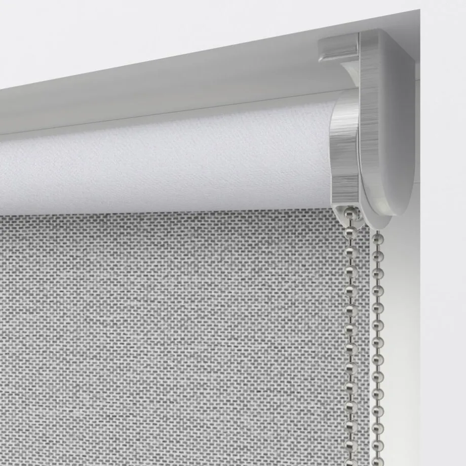 Verduisterend rolgordijn lichtgrijs/wit gemêleerd. De witte achterzijde zorgt voor volledige verduistering. Ideaal voor slaapkamers maar ook te gebruiken voor keukens en andere woonruimtes. Op maat te maken en volledig naar wens samen te stellen met een ruime keuze uit accessoires en uitvoeringen. Elektrische bediening en zijgeleiding is mogelijk. Ook geschikt voor draaikiepramen. Eenvoudig met een vochtige doek af te nemen.