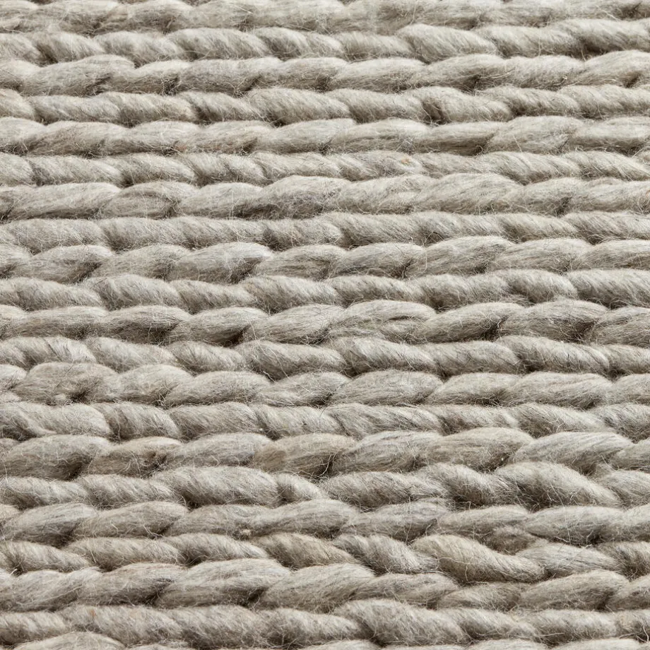 Handgemaakt en grof geweven wollen vloerkleed met greige kleur. Comfortabel, sterk, natuurlijk en slijtvast. 160×230 cm (bxl).