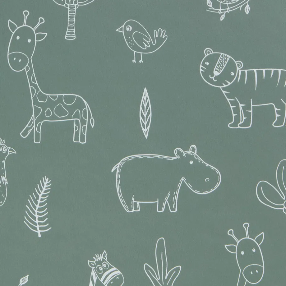 Vliesbehang Veerle in sfeervolle groene kleur met een prachtig dieren patroon.Het behang is voorzien van het FSC-keurmerk. Plakken met Perfax Pink. 10 meter per rol.