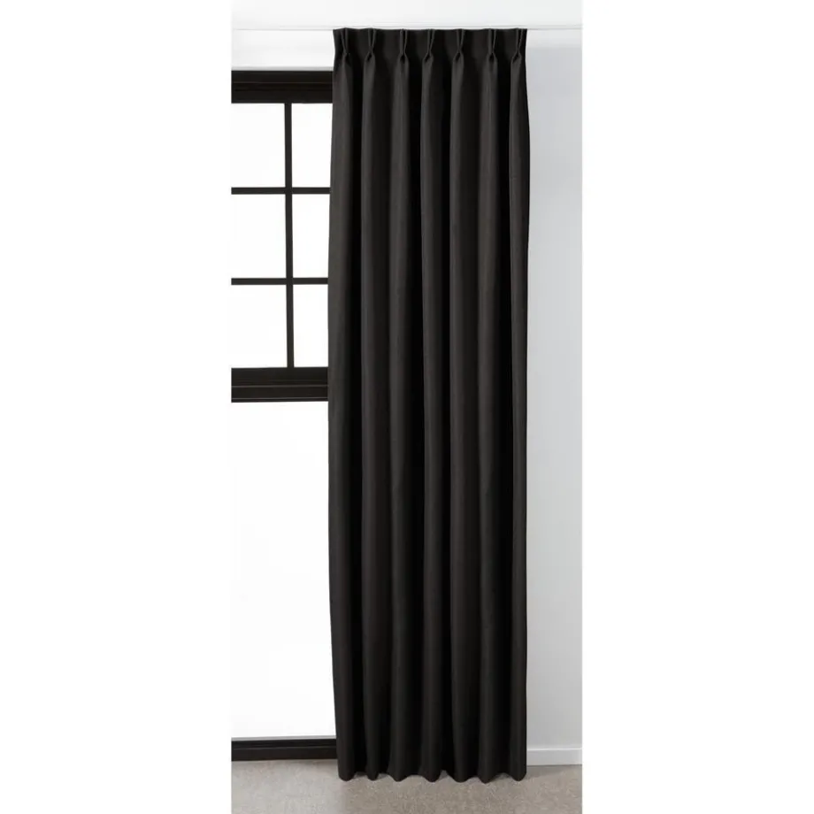 Gordijn Mila is in een zwarte kleur en heeft een subtiele glans. De stof is gemaakt van 100% polyester. Dit maakt dat de stof niet alleen slijtvast, maar ook makkelijk schoon te maken is met een vochtige doek. Doordat het gordijn een dim-out stof heeft, is gordijn ideaal om fel zonlicht tegen te houden.