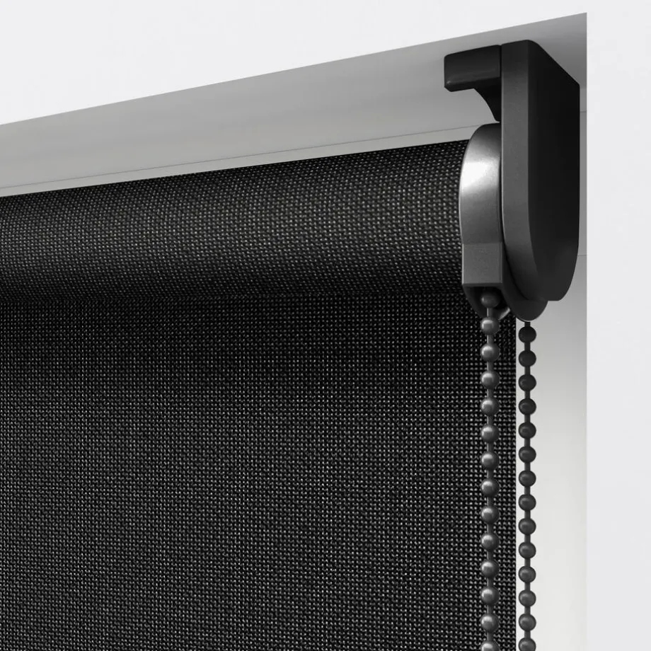 Screen rolgordijn Seb is zwart van kleur en lichtdoorlatend. Het materiaal bestaat uit glasvezeldraden met een PVC-coating. Hierdoor is de stof niet alleen sterk, maar filtert ook het zonlicht en blokkeert het inkijk. Dit systeem is alleen geschikt voor binnen gebruik en valt niet te monteren voor buiten het raam.