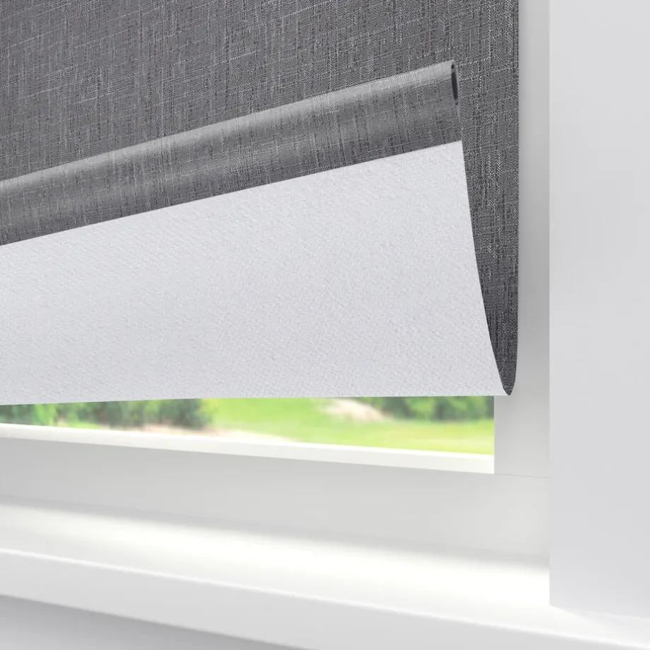Rolgordijn Xem is een verduisterend rolgordijn in een antraciet kleur. De stof heeft een speelse textuur en bestaat uit 70% gerecycled polyester en 30% polyester. Naast het milieuvriendelijke aspect van de stof, is de stof ook makkelijk schoon te maken met een vochtige doek en heeft het een lange levensduur. Dit rolgordijn is volledig op maat te maken, zodat het helemaal past bij de rest van jouw interieur.
