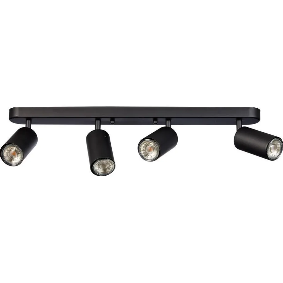 Strakke metalen spot met mat zwarte kleur. 4-lichts. Excl. lichtbron.