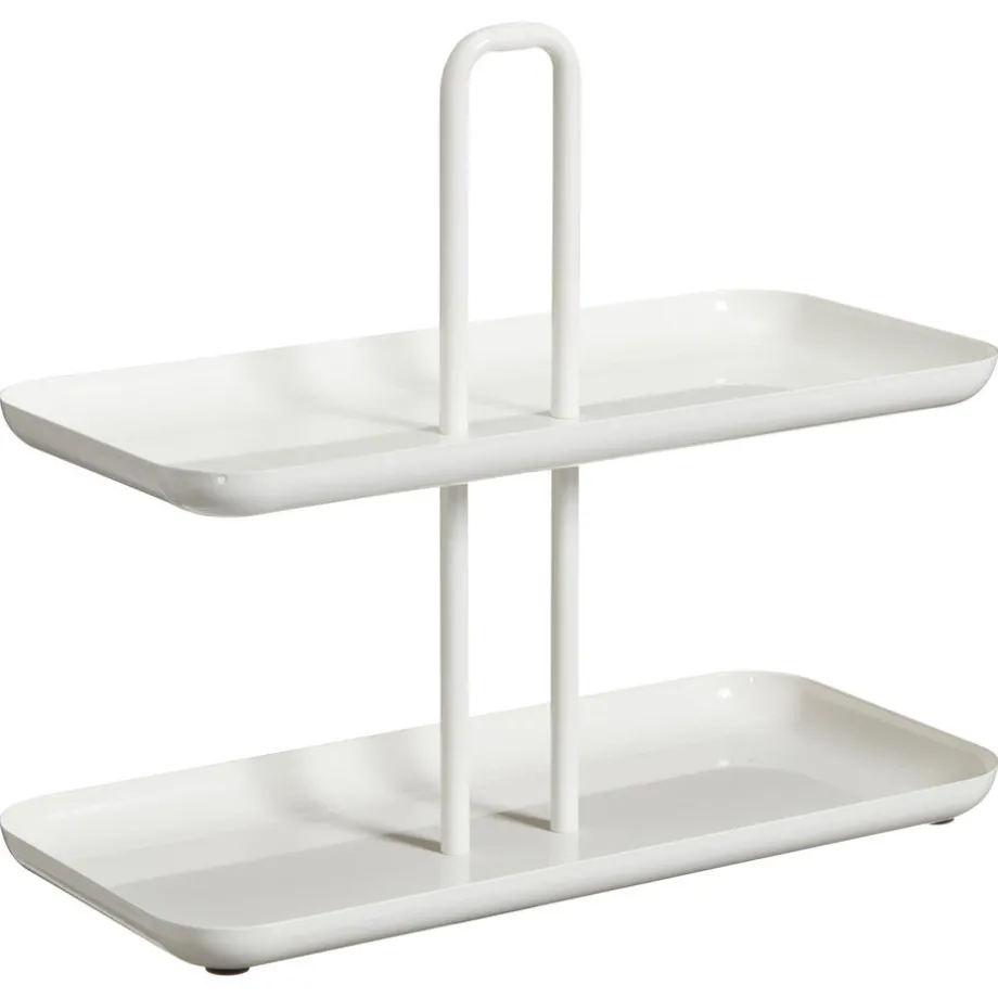Deze rechthoekige etagère in off-white is modern en trendy, perfect voor het serveren van high-tea, kleine tapas of een borrelplankje. Met twee vakken en een handig handvat, biedt deze stijlvolle etagère volop mogelijkheden. Gemaakt van stevig ijzer, voegt het een eigentijdse touch toe aan je tafel, ideaal voor een prachtige presentatie bij elke gelegenheid.