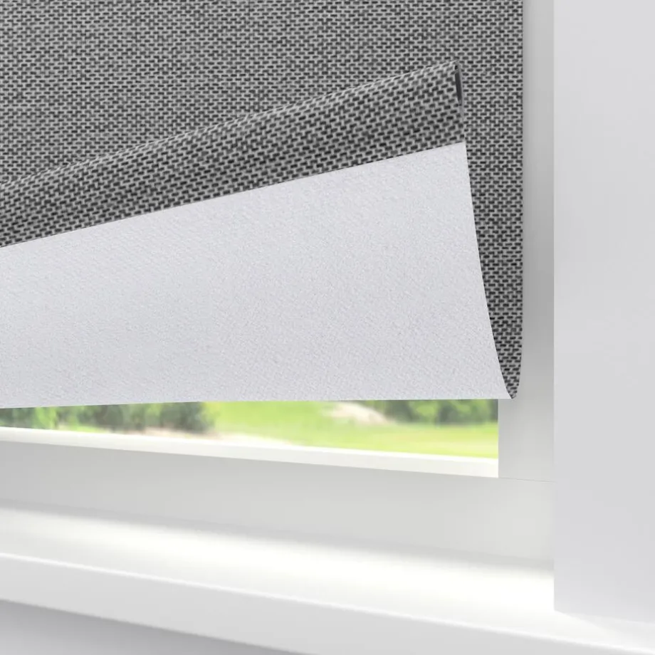 Verduisterend rolgordijn grijs/wit gemêleerd. De witte achterzijde zorgt voor volledige verduistering. Ideaal voor slaapkamers maar ook te gebruiken voor keukens en andere woonruimtes. Op maat te maken en volledig naar wens samen te stellen met een ruime keuze uit accessoires en uitvoeringen. Elektrische bediening en zijgeleiding is mogelijk. Ook geschikt voor draaikiepramen. Eenvoudig met een vochtige doek af te nemen.