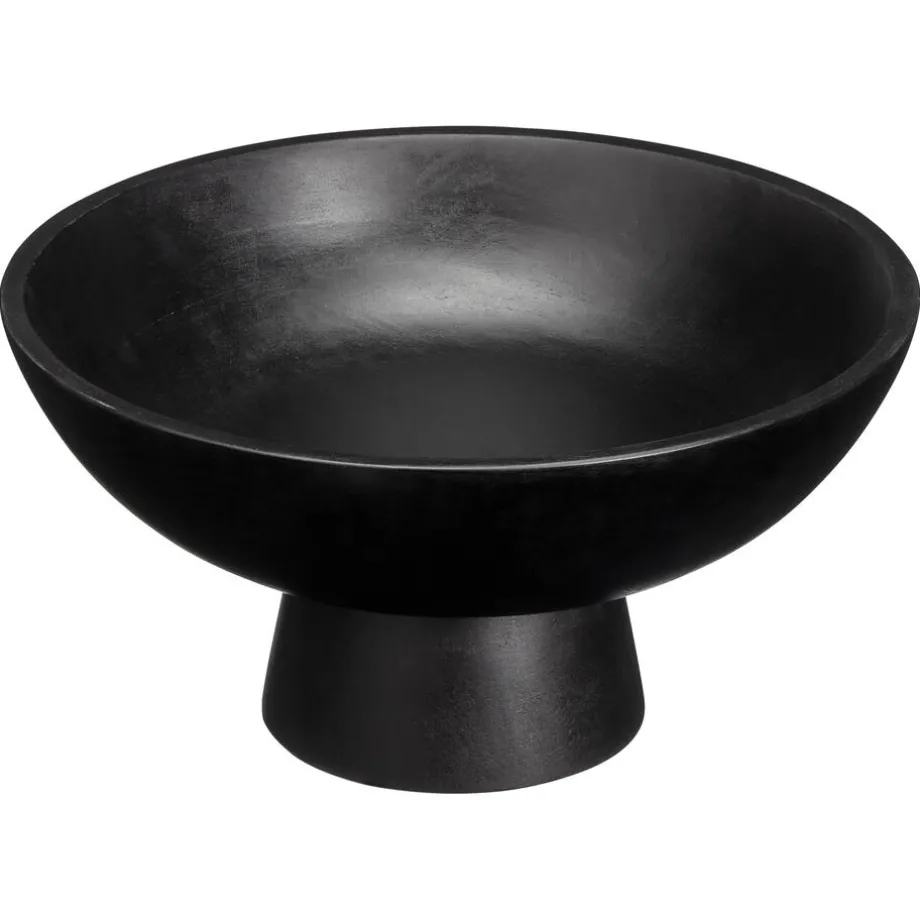 Op zoek naar een ronde schaal op voet, gemaakt van hout en afgewerkt in zwart? Deze zwrte schaal is perfect te gebruiken als fruitschaal met een diameter van 30 cm.