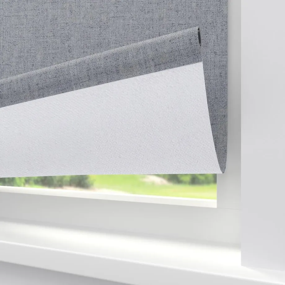 Verduisterend rolgordijn grijs gemêleerd met verschillende grijstinten. De witte achterzijde zorgt voor volledige verduistering. Ideaal voor slaapkamers maar ook te gebruiken voor keukens en andere woonruimtes. Op maat te maken en volledig naar wens samen te stellen met een ruime keuze uit accessoires en uitvoeringen. Elektrische bediening en zijgeleiding is mogelijk. Ook geschikt voor draaikiepramen. Eenvoudig met een vochtige doek af te nemen.