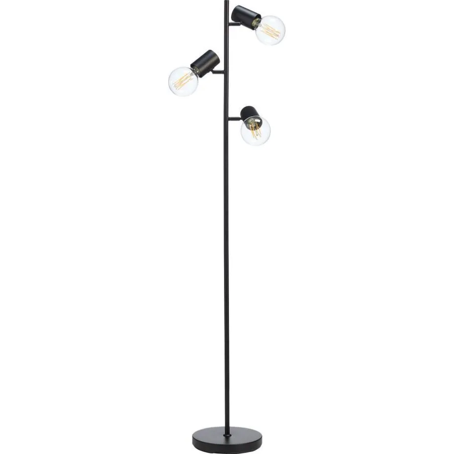 Vloerlamp van zwart metaal met 3 lichtpunten. Exclusief lampen. Fitting E27. Maximaal 10 watt. 23×146 cm (dxh).