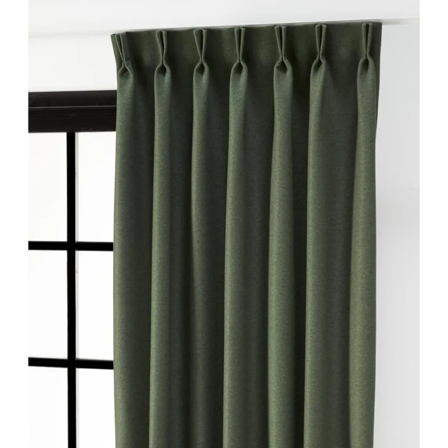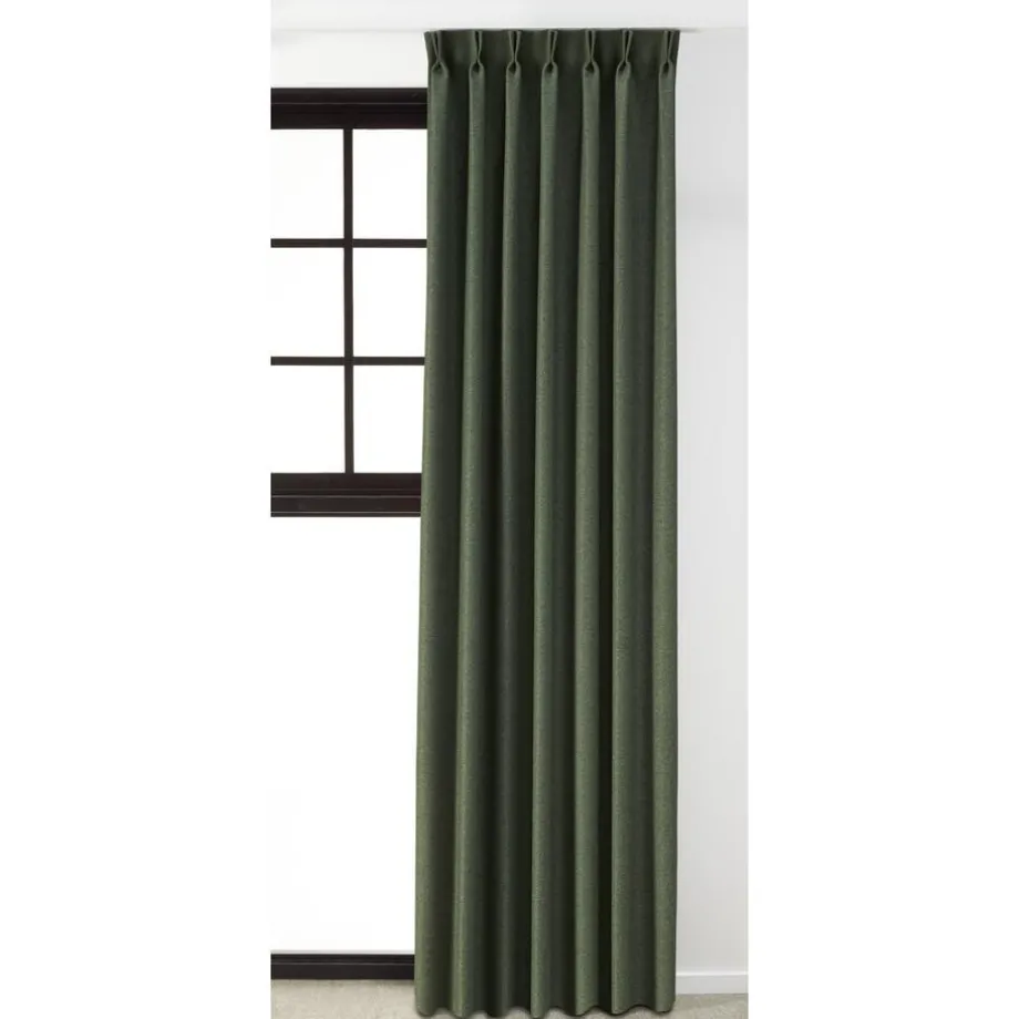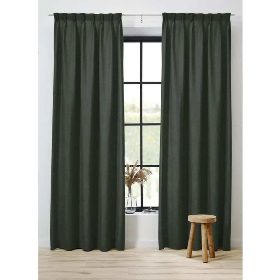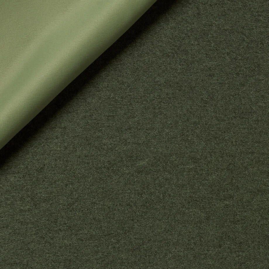 Verduisterende soepelvallende gordijnstof groen. De geborstelde voorzijde met geweven structuur zorgt voor een stoere uitstraling. Stevig, vormvast en slijtvast. Deze dim-out gordijnstof is tot 95% verduisterend. De stof laat weinig daglicht door maar houdt niet het volledige zonlicht tegen.