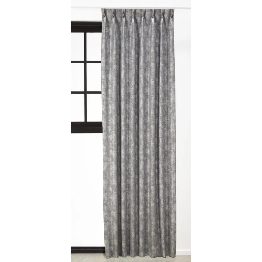 Verduisterende gordijnstof van stevig grijs materiaal met verweerde look. Soepelvallend en kreukherstellend. 138 cm breed.