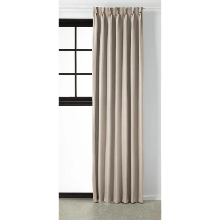 Zandkleurige uni gordijnstof. Breedte 145 cm.